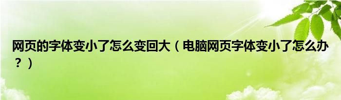 大家好,小安来为大家解答以上问题。网页的字体变小了怎么变回大,电脑网页字体变小了怎么办?很多人还不知道,现在让我们一起来看看吧!