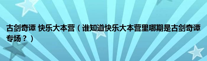 大家好,小安来为大家解答以上问题。古剑奇谭 快乐大本营,谁知道快乐大本营里哪期是古剑奇谭专场?很多人还不知道,现在让我们一起来看看吧!