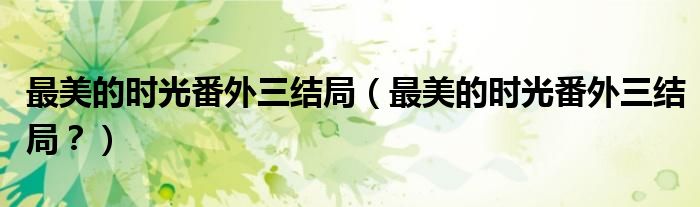大家好,小安来为大家解答以上问题。最美的时光番外三结局,最美的时光番外三结局?很多人还不知道,现在让我们一起来看看吧!
