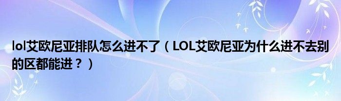 大家好,小安来为大家解答以上问题。lol艾欧尼亚排队怎么进不了,LOL艾欧尼亚为什么进不去别的区都能进?很多人还不知道,现在让我们一起来看看吧!