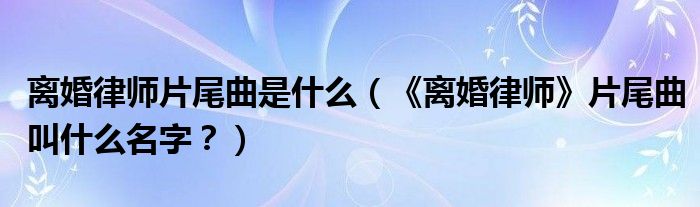 大家好,小安来为大家解答以上问题。离婚律师片尾曲是什么,《离婚律师》片尾曲叫什么名字?很多人还不知道,现在让我们一起来看看吧!