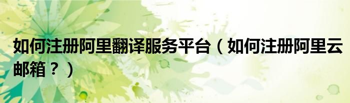 大家好,小安来为大家解答以上问题。如何注册阿里翻译服务平台,如何注册阿里云邮箱?很多人还不知道,现在让我们一起来看看吧!