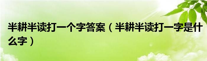 大家好,小安来为大家解答以上问题。半耕半读打一个字答案,半耕半读打一字是什么字很多人还不知道,现在让我们一起来看看吧!