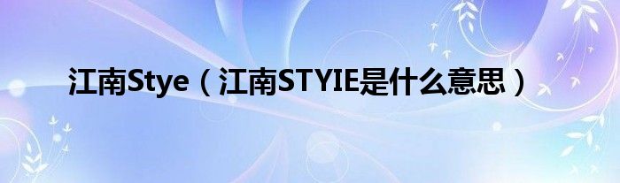 大家好,小安来为大家解答以上问题。江南Stye,江南STYIE是什么意思很多人还不知道,现在让我们一起来看看吧!