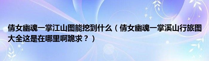 大家好,小安来为大家解答以上问题。倩女幽魂一掌江山图能挖到什么,倩女幽魂一掌溪山行旅图大全这是在哪里啊跪求?很多人还不知道,现在让我们一起来看看吧!