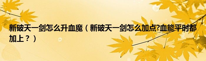 大家好,小安来为大家解答以上问题。新破天一剑怎么升血魔,新破天一剑怎么加点?血能平时都加上?很多人还不知道,现在让我们一起来看看吧!