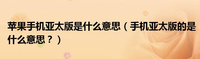 大家好,小安来为大家解答以上问题。苹果手机亚太版是什么意思,手机亚太版的是什么意思?很多人还不知道,现在让我们一起来看看吧!