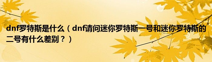 大家好,小安来为大家解答以上问题。dnf罗特斯是什么,dnf请问迷你罗特斯一号和迷你罗特斯的二号有什么差别?很多人还不知道,现在让我们一起来看看吧!
