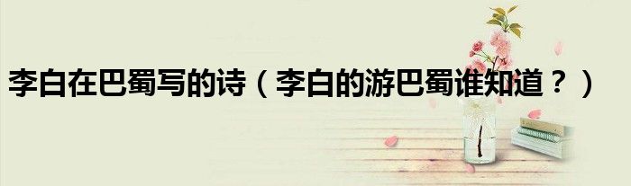 大家好,小安来为大家解答以上问题。李白在巴蜀写的诗,李白的游巴蜀谁知道?很多人还不知道,现在让我们一起来看看吧!