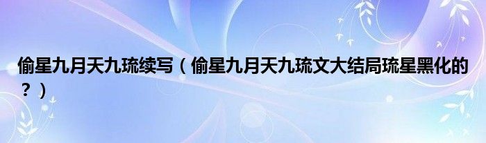 大家好,小安来为大家解答以上问题。偷星九月天九琉续写,偷星九月天九琉文大结局琉星黑化的?很多人还不知道,现在让我们一起来看看吧!