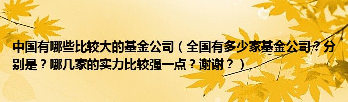大家好,小安来为大家解答以上问题。中国有哪些比较大的基金公司,全国有多少家基金公司?分别是?哪几家的实力比较强一点?谢谢?很多人还不知道,现在让我们一起来看看吧!