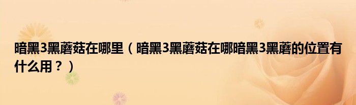 大家好,小安来为大家解答以上问题。暗黑3黑蘑菇在哪里,暗黑3黑蘑菇在哪暗黑3黑蘑的位置有什么用?很多人还不知道,现在让我们一起来看看吧!