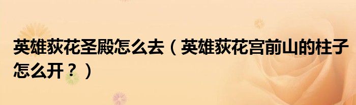 大家好,小安来为大家解答以上问题。英雄荻花圣殿怎么去,英雄荻花宫前山的柱子怎么开?很多人还不知道,现在让我们一起来看看吧!