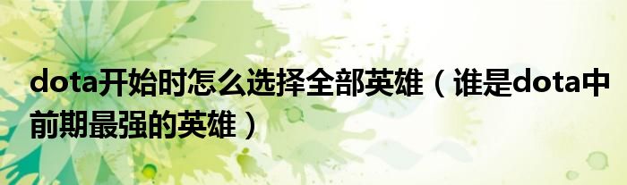 大家好,小安来为大家解答以上问题。dota开始时怎么选择全部英雄,谁是dota中前期最强的英雄很多人还不知道,现在让我们一起来看看吧!