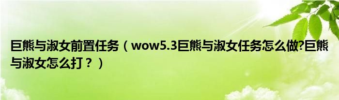 大家好,小安来为大家解答以上问题。巨熊与淑女前置任务,wow5.3巨熊与淑女任务怎么做?巨熊与淑女怎么打?很多人还不知道,现在让我们一起来看看吧!