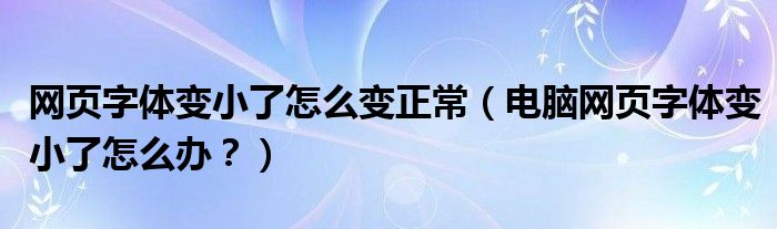 大家好,小安来为大家解答以上问题。网页字体变小了怎么变正常,电脑网页字体变小了怎么办?很多人还不知道,现在让我们一起来看看吧!