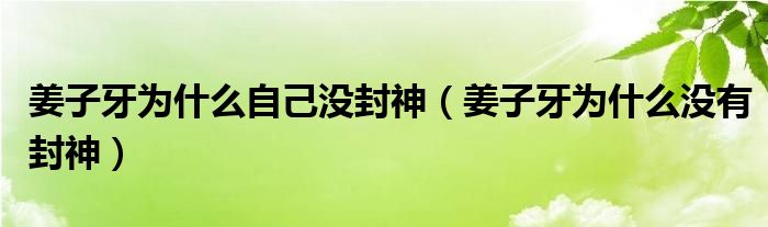 大家好,小安来为大家解答以上问题。姜子牙为什么自己没封神,姜子牙为什么没有封神很多人还不知道,现在让我们一起来看看吧!