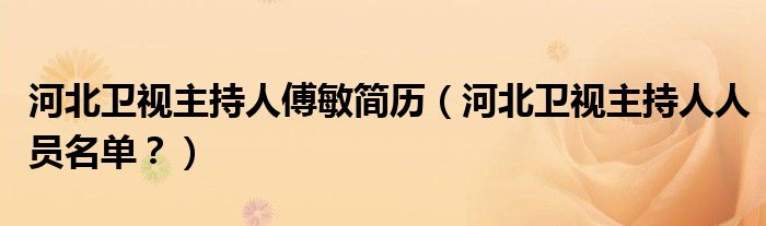大家好,小安来为大家解答以上问题。河北卫视主持人傅敏简历,河北卫视主持人人员名单?很多人还不知道,现在让我们一起来看看吧!
