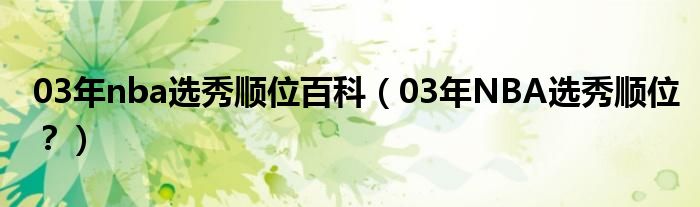 大家好,小安来为大家解答以上问题。03年nba选秀顺位百科,03年NBA选秀顺位?很多人还不知道,现在让我们一起来看看吧!