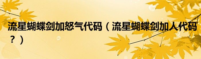 大家好,小安来为大家解答以上问题。流星蝴蝶剑加怒气代码,流星蝴蝶剑加人代码?很多人还不知道,现在让我们一起来看看吧!