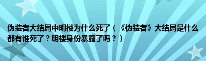 大家好,小安来为大家解答以上问题。伪装者大结局中明楼为什么死了,《伪装者》大结局是什么都有谁死了?明楼身份暴露了吗?很多人还不知道,现在让我们一起来看看吧!