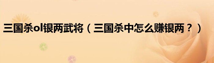 大家好,小安来为大家解答以上问题。三国杀ol银两武将,三国杀中怎么赚银两?很多人还不知道,现在让我们一起来看看吧!