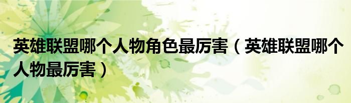 大家好,小安来为大家解答以上问题。英雄联盟哪个人物角色最厉害,英雄联盟哪个人物最厉害很多人还不知道,现在让我们一起来看看吧!