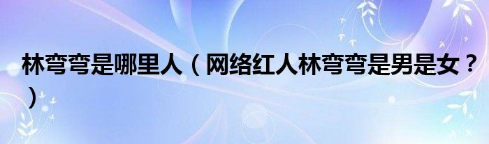 大家好,小安来为大家解答以上问题。林弯弯是哪里人,网络红人林弯弯是男是女?很多人还不知道,现在让我们一起来看看吧!