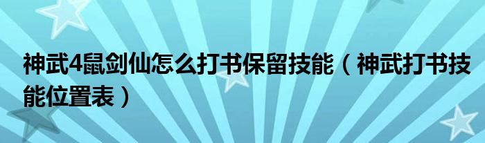 大家好,小安来为大家解答以上问题。神武4鼠剑仙怎么打书保留技能,神武打书技能位置表很多人还不知道,现在让我们一起来看看吧!
