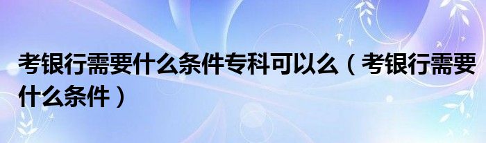 大家好,小安来为大家解答以上问题。考银行需要什么条件专科可以么,考银行需要什么条件很多人还不知道,现在让我们一起来看看吧!