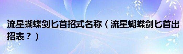 大家好,小安来为大家解答以上问题。流星蝴蝶剑匕首招式名称,流星蝴蝶剑匕首出招表?很多人还不知道,现在让我们一起来看看吧!