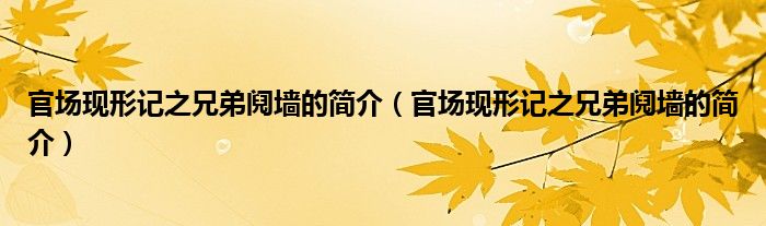 大家好,小安来为大家解答以上问题。官场现形记之兄弟阋墙的简介,官场现形记之兄弟阋墙的简介很多人还不知道,现在让我们一起来看看吧!