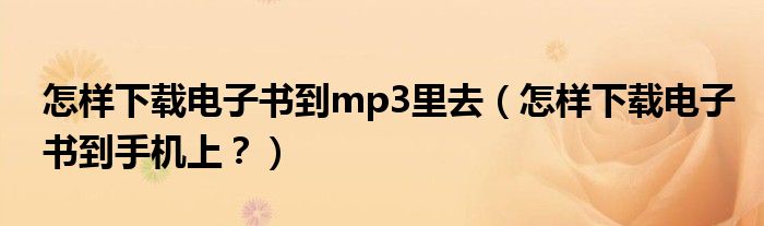 大家好,小安来为大家解答以上问题。怎样下载电子书到mp3里去,怎样下载电子书到手机上?很多人还不知道,现在让我们一起来看看吧!