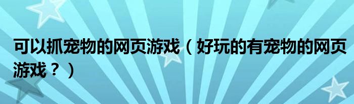 大家好,小安来为大家解答以上问题。可以抓宠物的网页游戏,好玩的有宠物的网页游戏?很多人还不知道,现在让我们一起来看看吧!