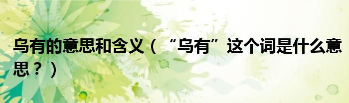 大家好,小安来为大家解答以上问题。乌有的意思和含义,“乌有”这个词是什么意思?很多人还不知道,现在让我们一起来看看吧!