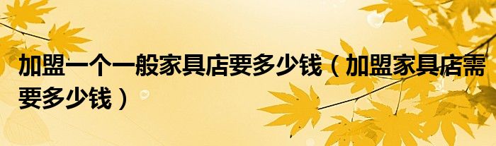 大家好,小安来为大家解答以上问题。加盟一个一般家具店要多少钱,加盟家具店需要多少钱很多人还不知道,现在让我们一起来看看吧!
