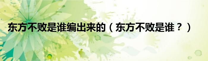 大家好,小安来为大家解答以上问题。东方不败是谁编出来的,东方不败是谁?很多人还不知道,现在让我们一起来看看吧!