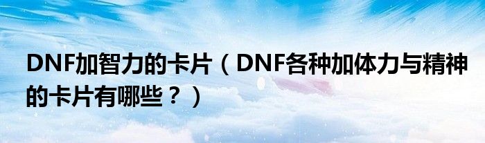 大家好,小安来为大家解答以上问题。DNF加智力的卡片,DNF各种加体力与精神的卡片有哪些?很多人还不知道,现在让我们一起来看看吧!