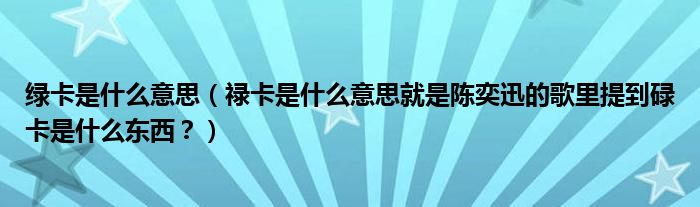 大家好,小安来为大家解答以上问题。绿卡是什么意思,禄卡是什么意思就是陈奕迅的歌里提到碌卡是什么东西?很多人还不知道,现在让我们一起来看看吧!