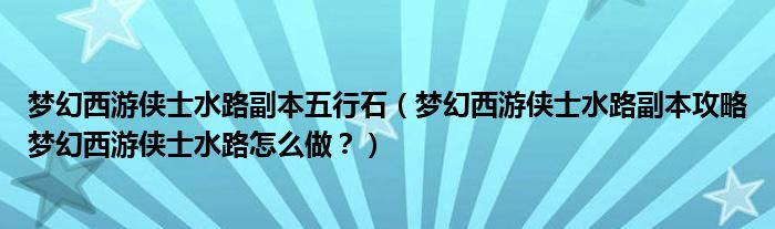 大家好,小安来为大家解答以上问题。梦幻西游侠士水路副本五行石,梦幻西游侠士水路副本攻略梦幻西游侠士水路怎么做?很多人还不知道,现在让我们一起来看看吧!