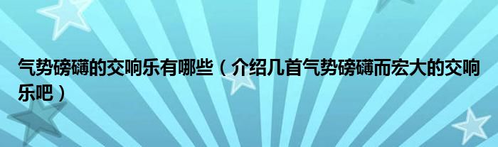 大家好,小安来为大家解答以上问题。气势磅礴的交响乐有哪些,介绍几首气势磅礴而宏大的交响乐吧很多人还不知道,现在让我们一起来看看吧!