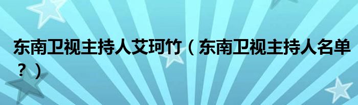 大家好,小安来为大家解答以上问题。东南卫视主持人艾珂竹,东南卫视主持人名单?很多人还不知道,现在让我们一起来看看吧!