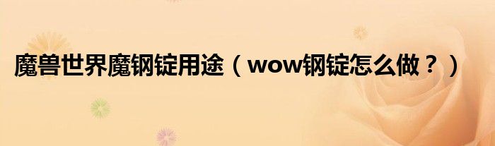 大家好,小安来为大家解答以上问题。魔兽世界魔钢锭用途,wow钢锭怎么做?很多人还不知道,现在让我们一起来看看吧!
