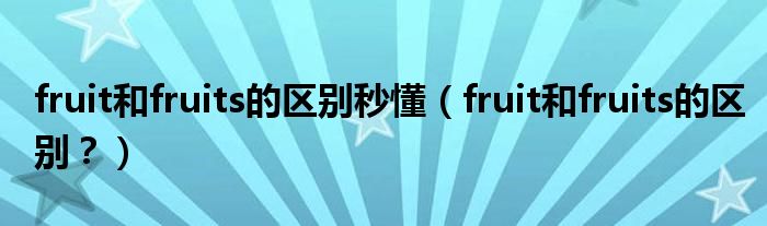 大家好,小安来为大家解答以上问题。fruit和fruits的区别秒懂,fruit和fruits的区别?很多人还不知道,现在让我们一起来看看吧!