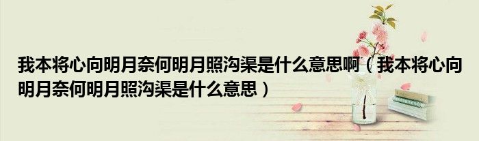 大家好,小安来为大家解答以上问题。我本将心向明月奈何明月照沟渠是什么意思啊,我本将心向明月奈何明月照沟渠是什么意思很多人还不知道,现在让我们一起来看看吧!