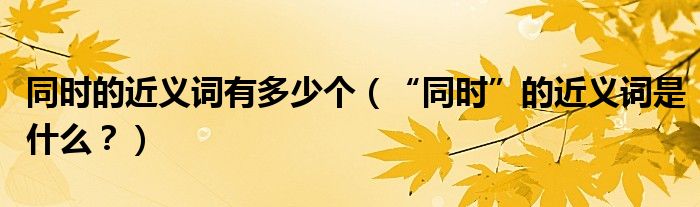 大家好,小安来为大家解答以上问题。同时的近义词有多少个,“同时”的近义词是什么?很多人还不知道,现在让我们一起来看看吧!