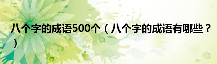 大家好,小安来为大家解答以上问题。八个字的成语500个,八个字的成语有哪些?很多人还不知道,现在让我们一起来看看吧!