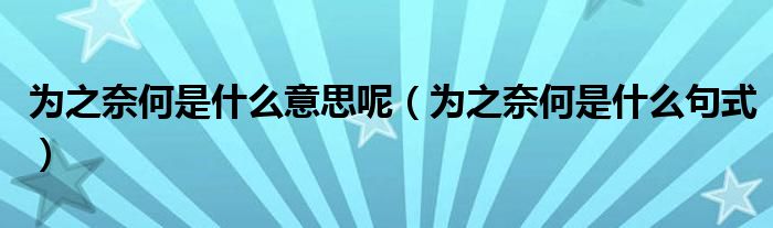 大家好,小安来为大家解答以上问题。为之奈何是什么意思呢,为之奈何是什么句式很多人还不知道,现在让我们一起来看看吧!