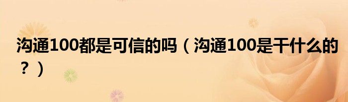 大家好,小安来为大家解答以上问题。沟通100都是可信的吗,沟通100是干什么的?很多人还不知道,现在让我们一起来看看吧!