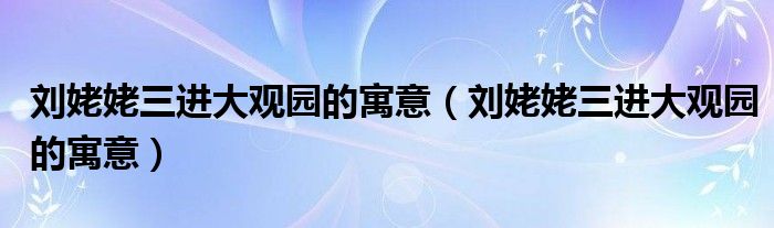 大家好,小安来为大家解答以上问题。刘姥姥三进大观园的寓意,刘姥姥三进大观园的寓意很多人还不知道,现在让我们一起来看看吧!
